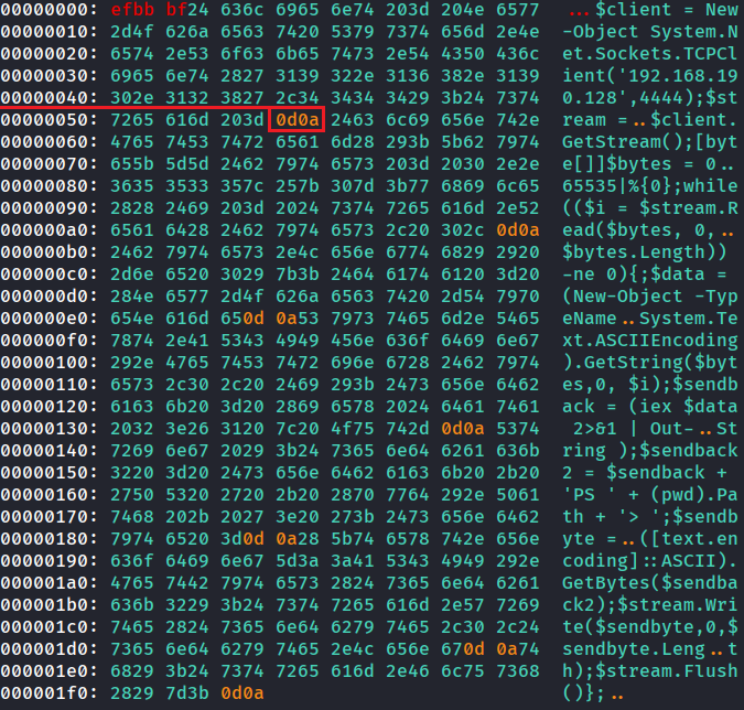 Payloads on Windows will not trigger unless the correct encoding and line termination signal are received.
